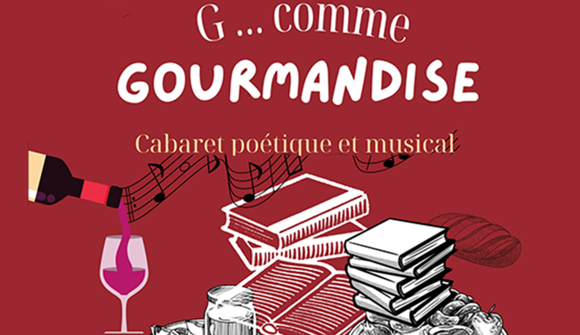 Le spectacle, intitulé « G… comme Gourmandise », interprété par quatre artistes, deux musiciens-chanteurs et deux comédiennes se joue sous la forme d’un Cabaret gourmand qui allie les mots et les mets.